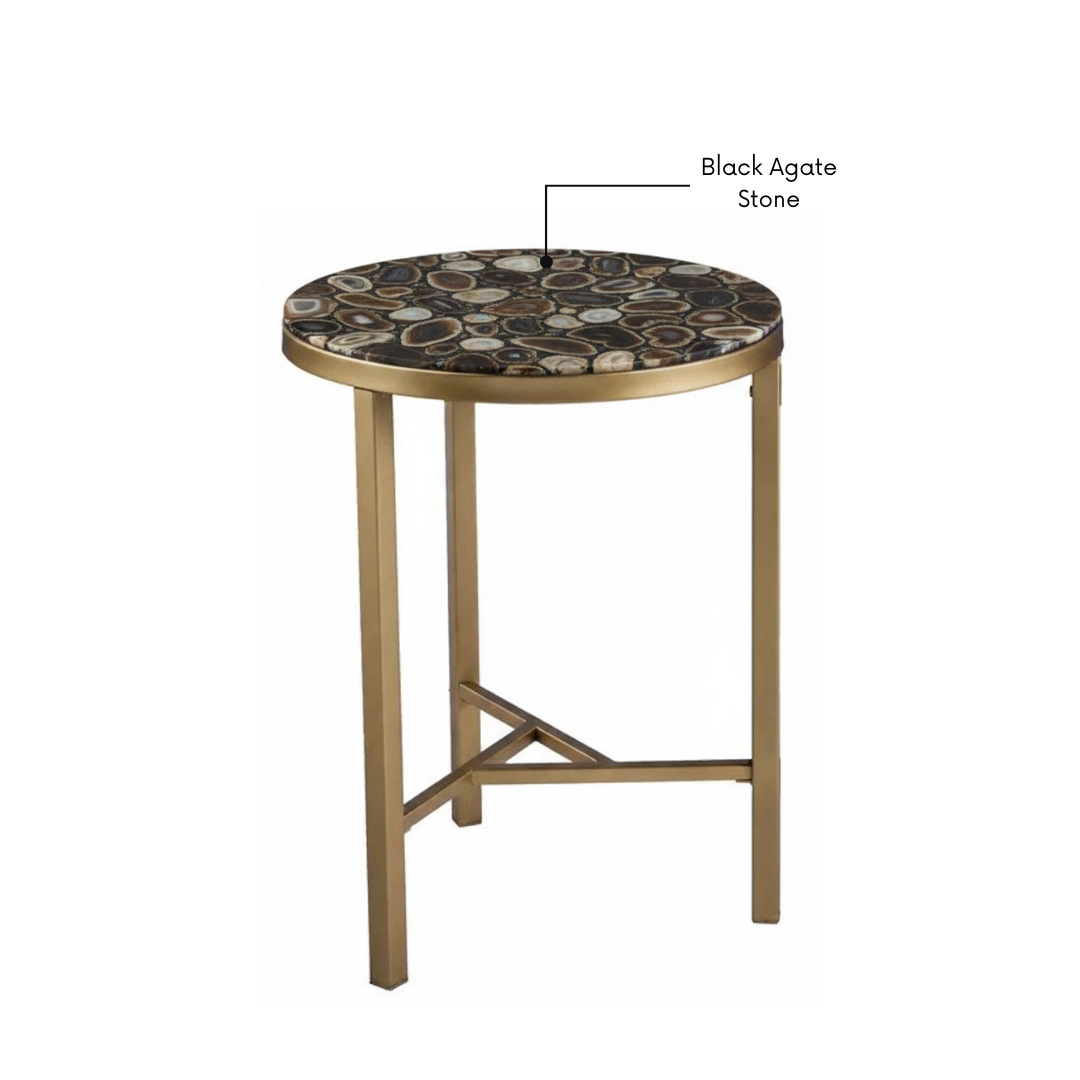 Exotic Black Agate: Stunning mosaic top crafted from genuine semi-precious agate slices, featuring mesmerizing natural concentric banding.