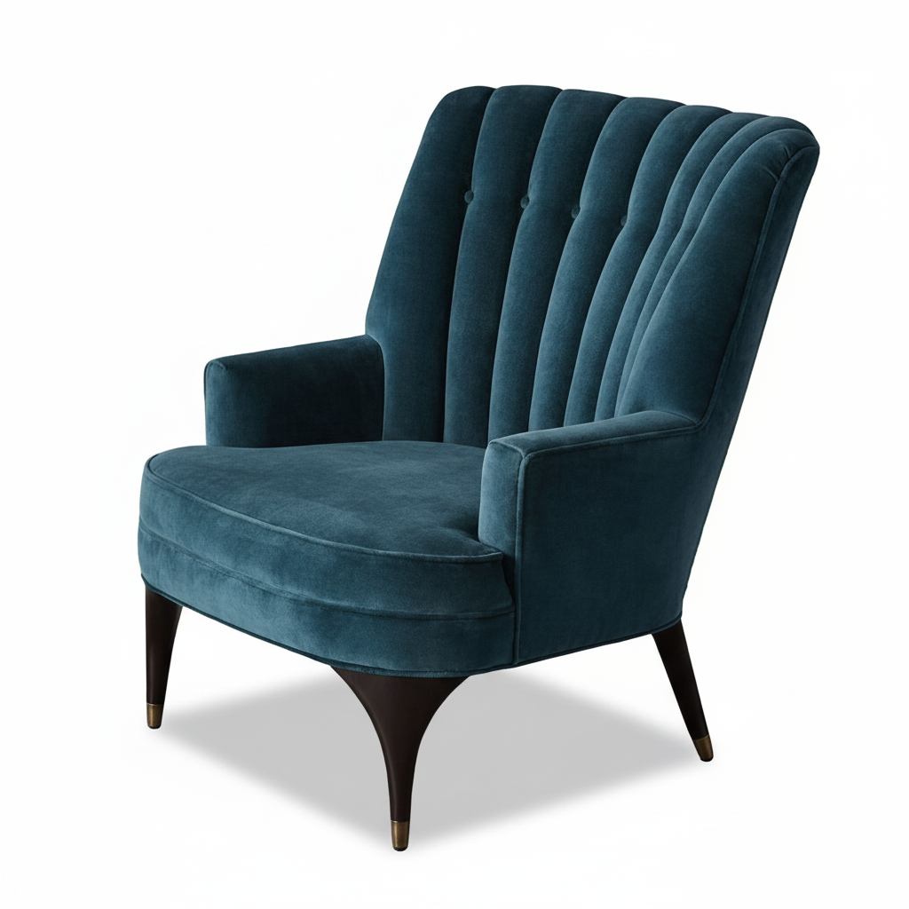 A rich 100% cotton covers the surface of the chair. The back is channel-tufted with inset buttons buried deep within the channels.