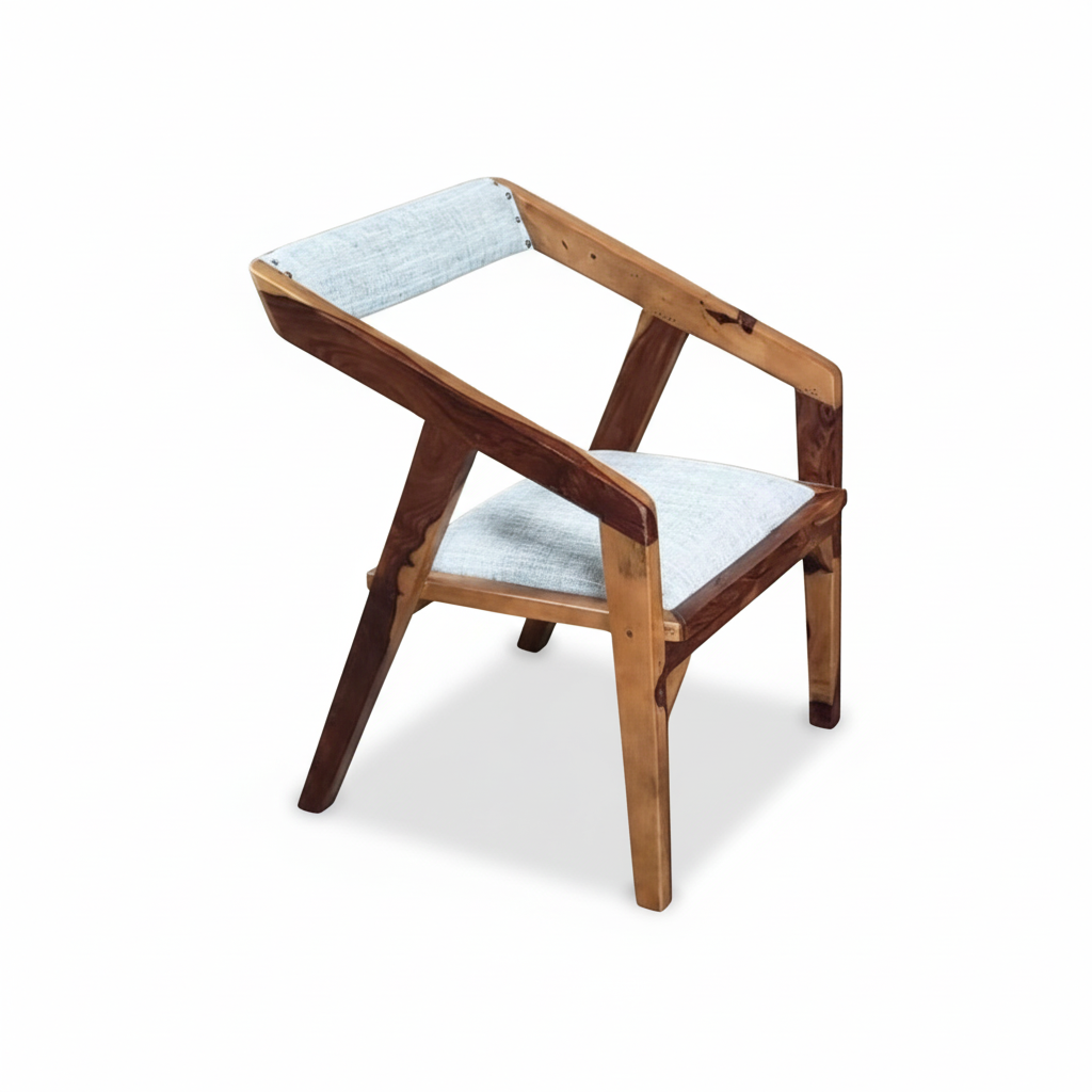 - Open Frame Arms: The angular wooden frame forms open, geometrically interesting armrests and back supports.