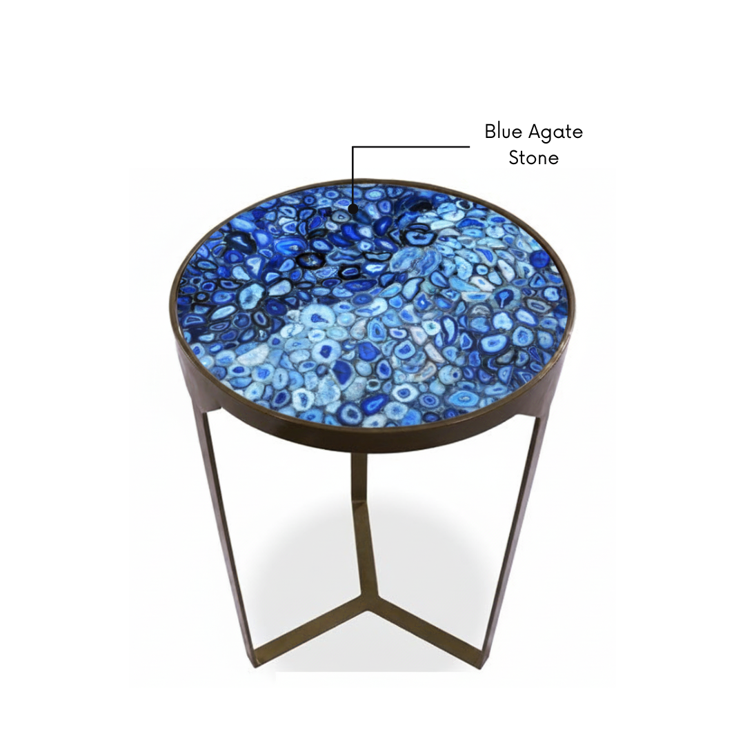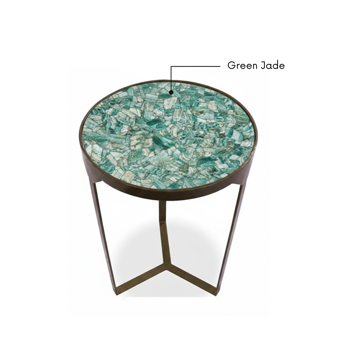 Antique Bronze/Brass Finish: The metal frame sports a warm, burnished metallic finish that contrasts elegantly with the cool tones of the stone.