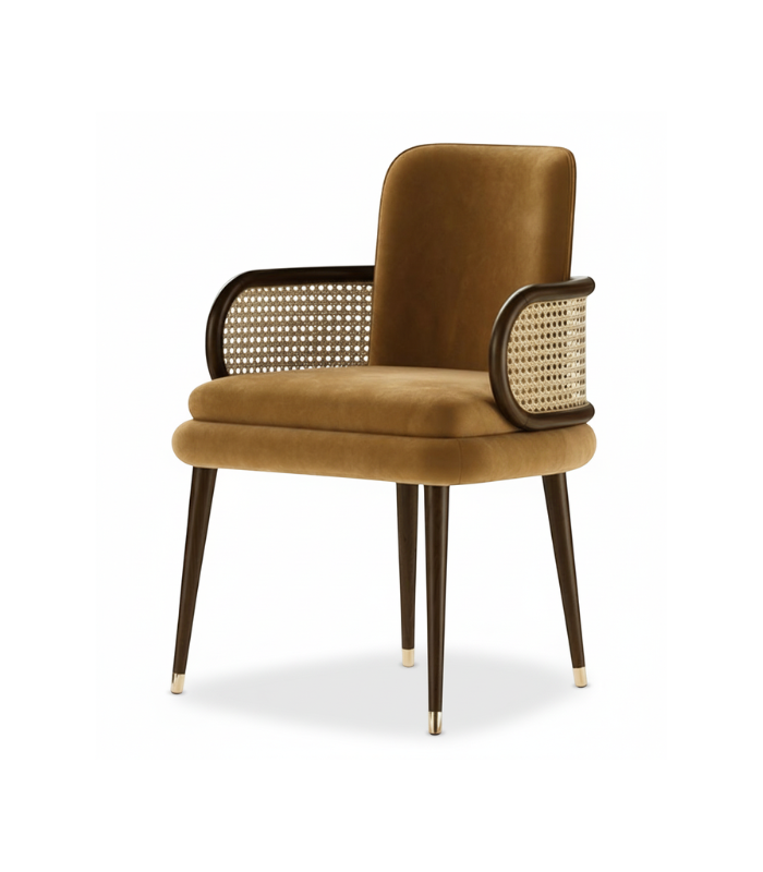 Elevate your living space with the Luxe Cane Accent Chair from Taksh Homes, where modern elegance meets timeless craftsmanship.