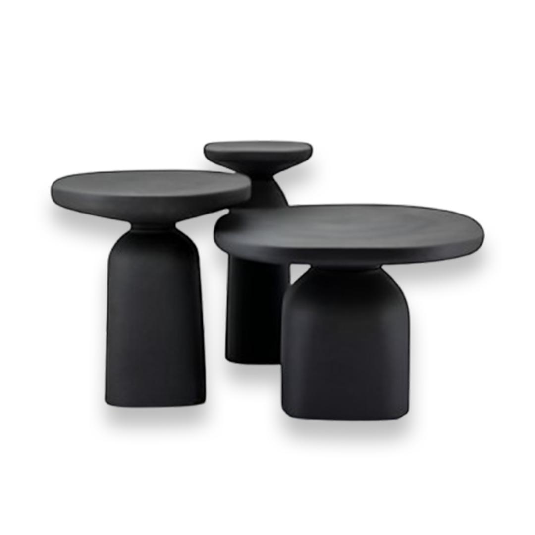 - Set Composition: Includes three tables of varying heights and dimensions, designed for nesting or grouping.