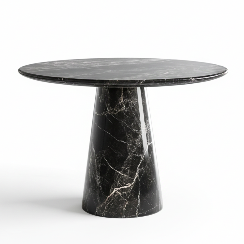The ultimate expression of modern luxury, this Black Marble Pedestal Side Table brings striking elegance to any living space.