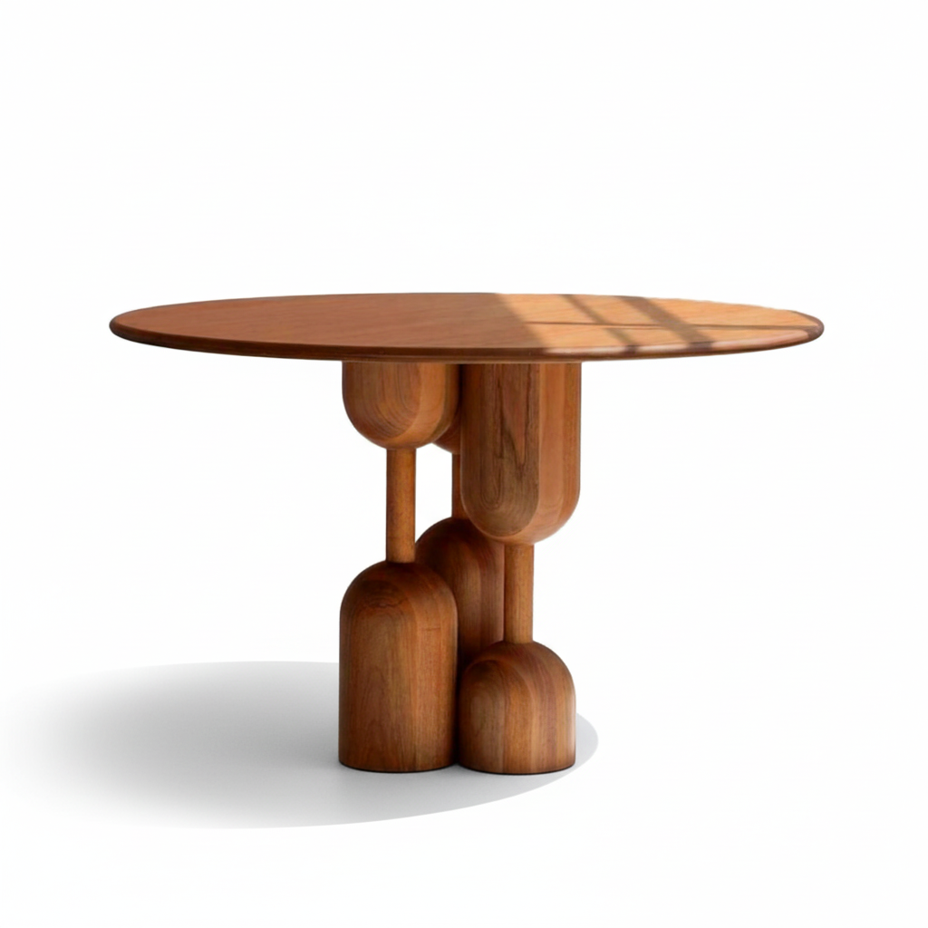 - Round Tabletop: Supported by a simple, circular tabletop with gently rounded edges, contrasting the complexity of the base.