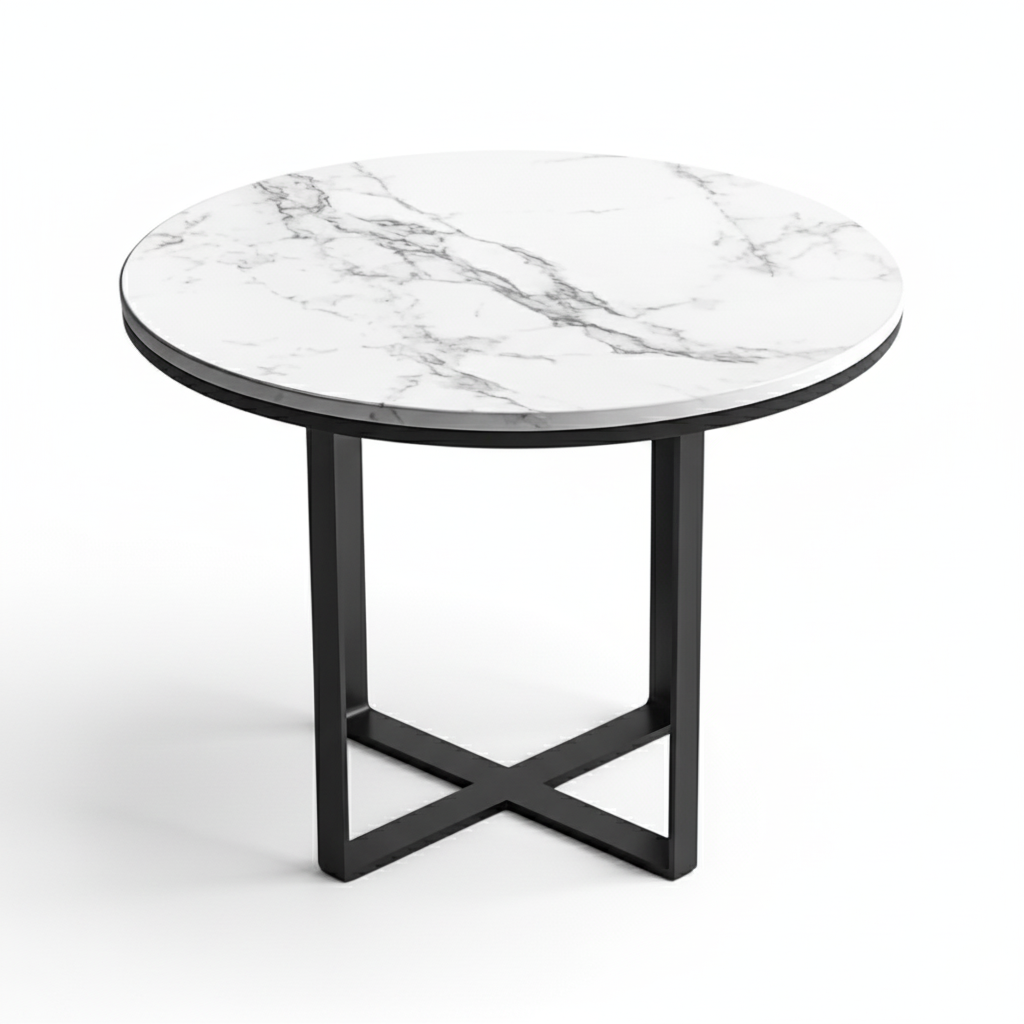 Tabletop: Round White Marble-Look (Faux Marble/Laminate/Engineered Stone)