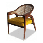 This is a stunning armchair that blends the warmth of traditional materials with the sleek lines of Mid-Century Modern design.