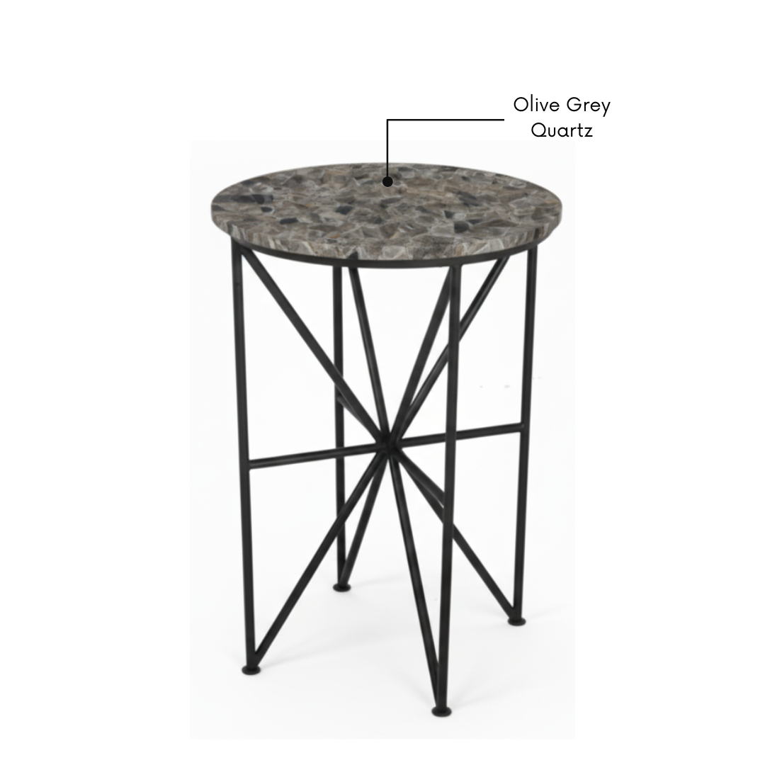 Geometric Metal Base: Sturdy, matte black iron frame with a modern intersecting design.